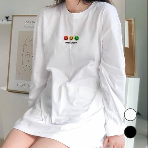 [험블][험블] 스마일라이트 레터링 루즈핏 레이어드 긴팔티셔츠 (7343311A)