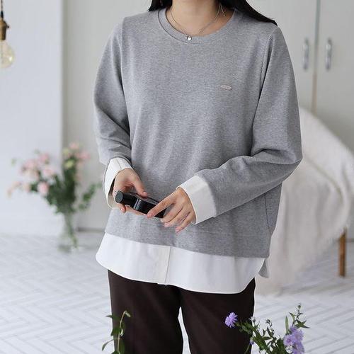 옷자락 / 여자 빅사이즈 레이어드 배색 루즈핏 펜던트 티셔츠