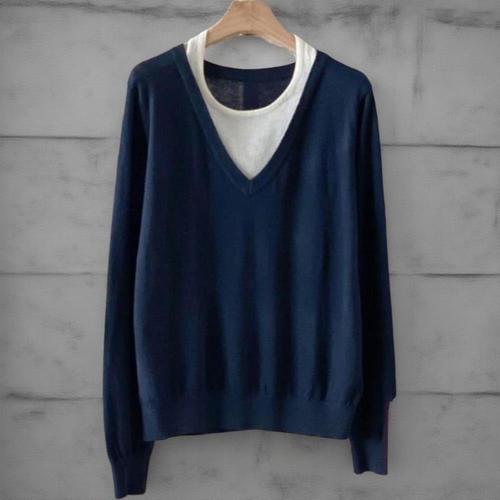 [옷자락]여성 울 티셔츠 레이어드 긴팔 루즈핏 니트