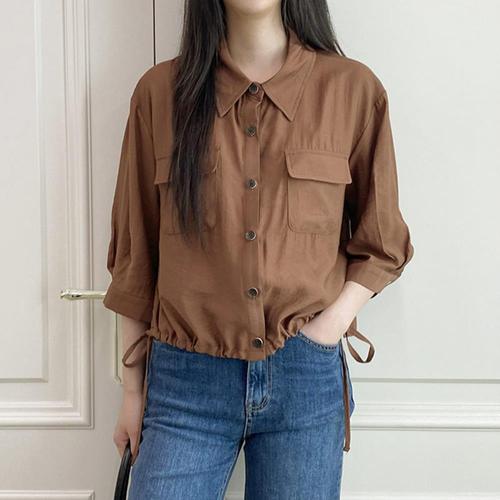 여성 클래식 드로우코드 레이온 칠부 셔츠