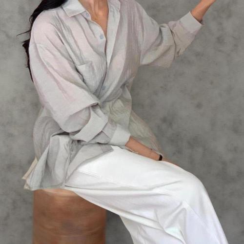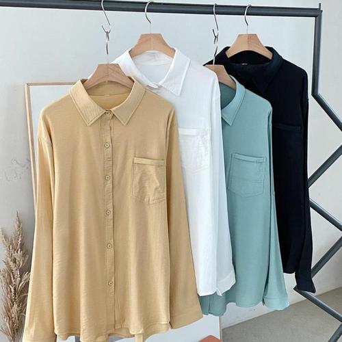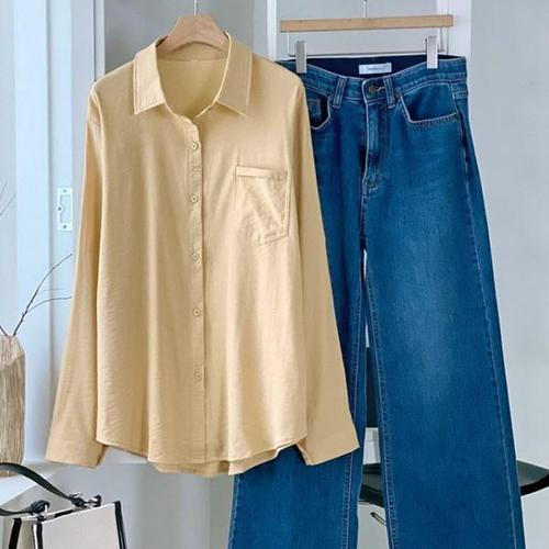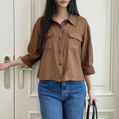 여성용 레이온면 편한 폴딩소매 주머니 셔츠