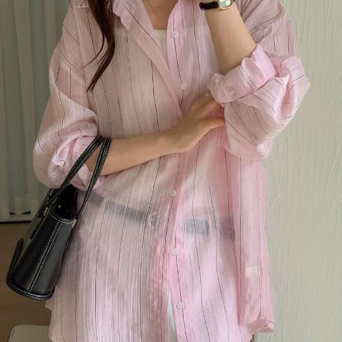 여성 줄지 바스락 레이온 박시핏 비침 남방