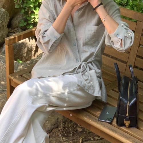 여성 랩 주머니 레이온 스트랩 언발란스 셔츠