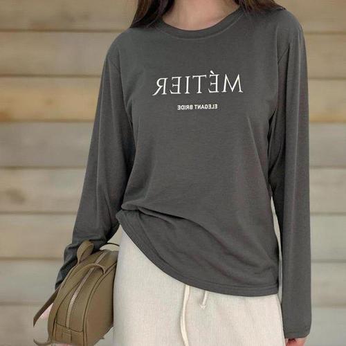 [신상오픈런]여자 데일리 레터링 레이온 스판 긴팔 티셔츠