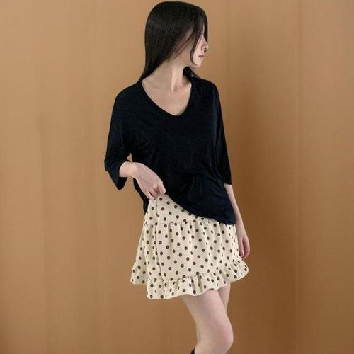 [신상오픈런]여자 찰랑핏 레이온 스판 브이넥 8부 티셔츠