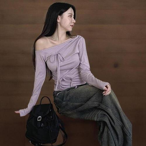 [신상오픈런]여자 레이온 스판 셔링 스트랩 긴팔티