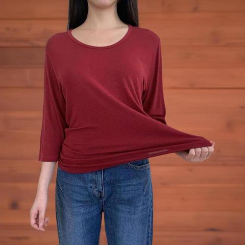 레이온 라운드넥 티셔츠 여성용 무지 베이직 슬림핏 긴팔 이너티