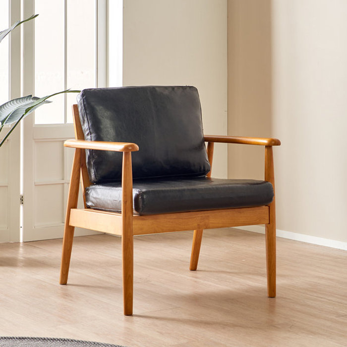 [해외]인테리어 가죽소파 포인트의자 1인용소파 거실 카페 라운지 등받이