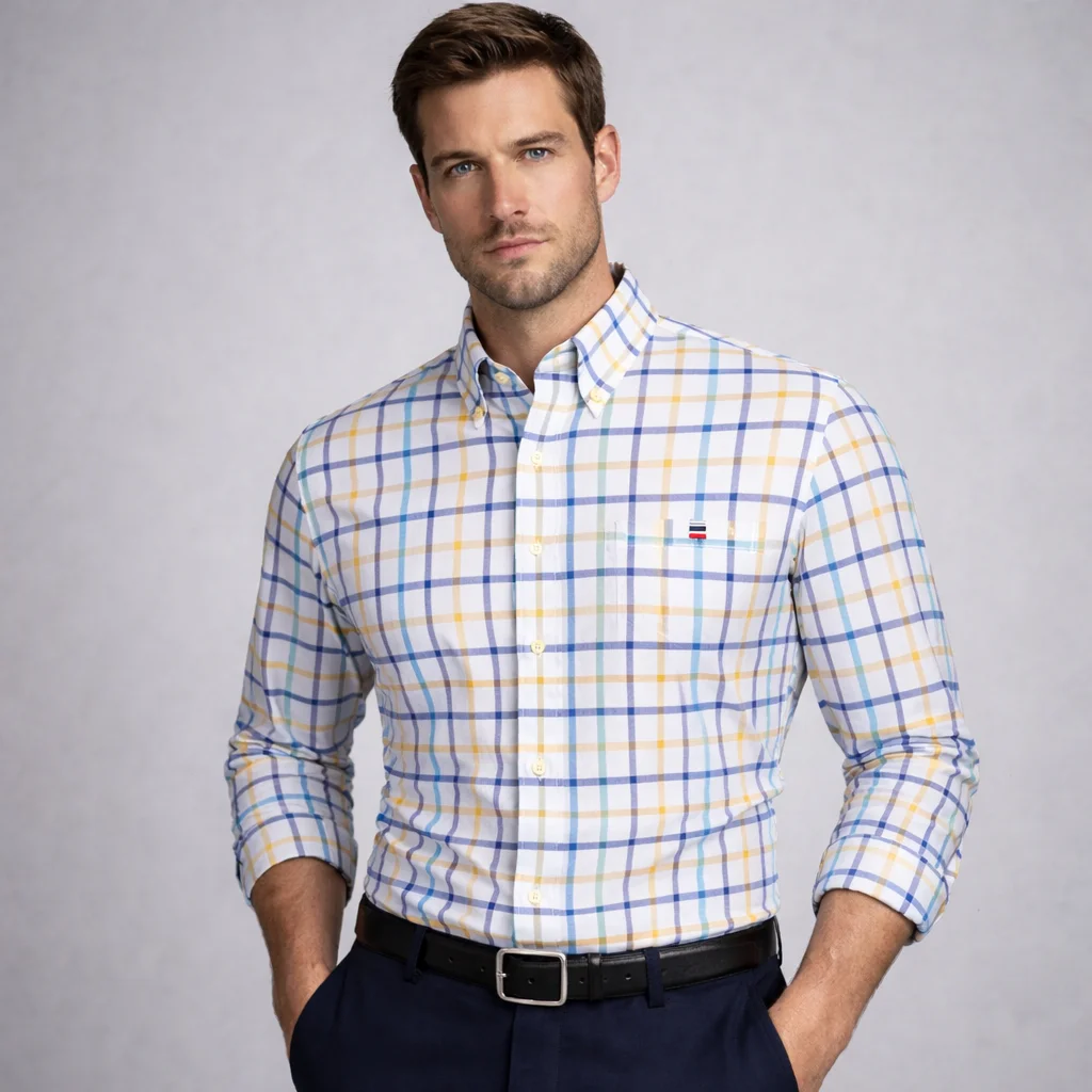 남성용 100% 면 긴 소매 버튼 다운 체크 셔츠 싱글 가슴 포켓 작업 캐주얼 스탠다드 핏 체크 무늬 스트라이프 옥스포드 셔츠