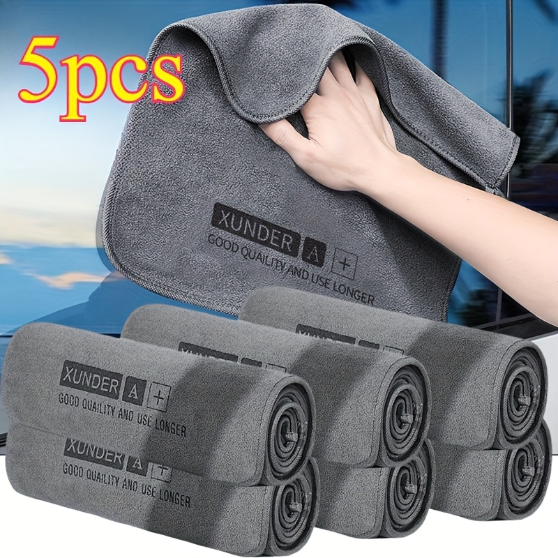 TEMU 차량 세척을 위한 극세사 타월 5개 세트. 차량 표면에 적합한 부드러운 건조 천으로, 두꺼운 고흡수성 플러시 소재의 이중 레이어로 구성되어 있습니다.