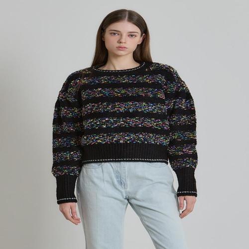 |CST9F4A|여성용 오버핏 라운드 니트 겨울용 단가라 레인보우 디자인