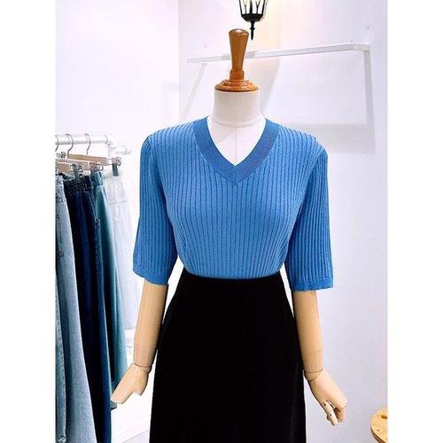 갤러리아_[레코브]펄사 브이넥 골지 반팔니트(LK31F5KN513X)