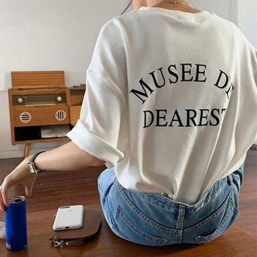 [에이치플러스몰]뒷면 인기 레터링 티셔츠 여성 감성 학생 반팔티 여름