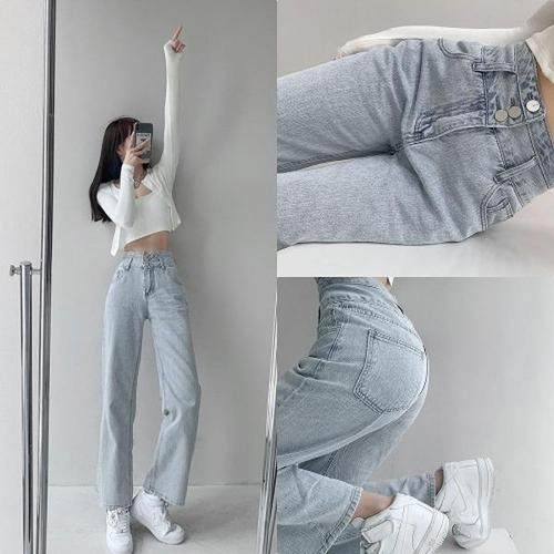 [신상오픈런]여성 레트로 허리 밴딩 와이드 베이직 데님
