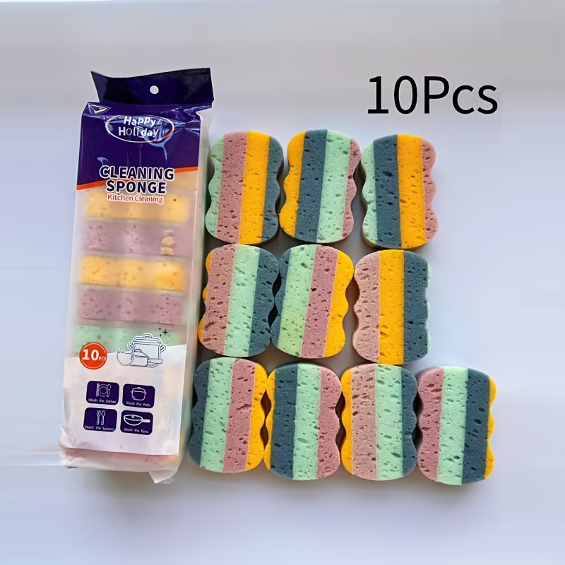 TEMU 10개 주방 청소 스펀지, 양면 사용 냄비 및 접시 스크러버, 스토브탑용|싱크대