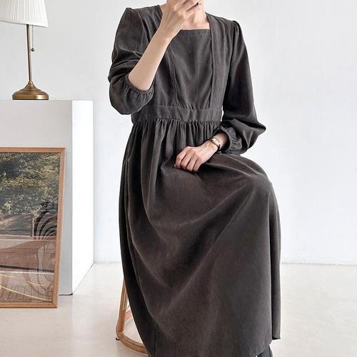 [다잇템]여자 박스 벌룬 잔주름 스퀘어넥 FW 롱원피스 (17903812A)