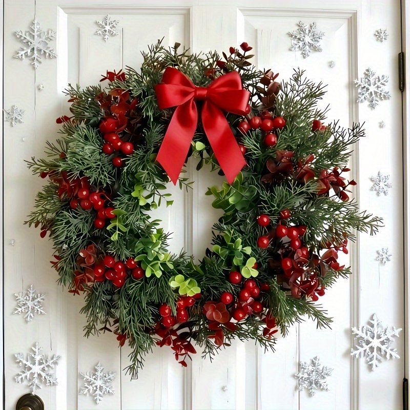 TEMU 생동감 넘치는 인조 플라스틱 크리스마스 리스 - 빨간 열매, 솔방울, 유칼립투스 잎이 특징인 대형 실내/야외용 문걸이 장식, 자가 지지형 후크 포함. 유지 관리가 필요 없는 인조 그린리, 벽난로나 테이블 센터피스로 사계절 내내 사용 가능, 계절 장식,스타일리시한 휴일 장식,장식용 화환,내구성 있는 인조 그린리,자립형 후크 장식,계절 장식 애호가들