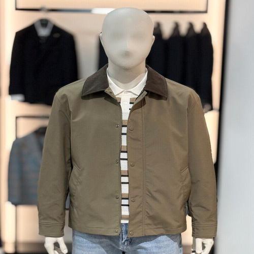 [바쏘옴므]카키 코듀로이 카라배색 바람막이 캐주얼점퍼