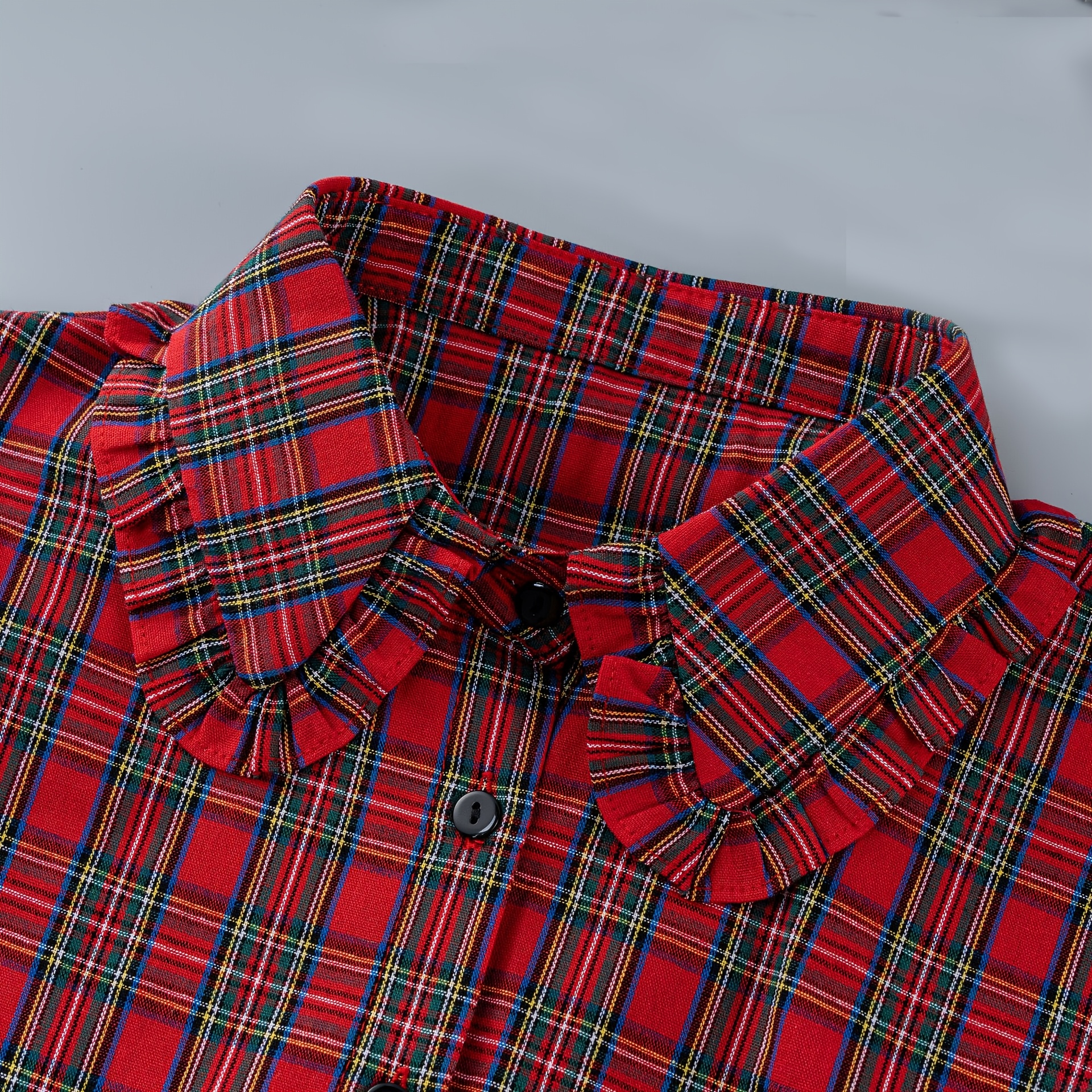 TEMU 새로운 프린트 인형 칼라 프릴 우아한 패션 체크 셔츠 페이크 칼라 여성 스웨터 레이어 다용도 페이크 칼라, 크리스마스 테마