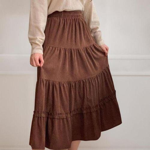 [옷자락]여성 로맨틱 골덴 롱 스커트 셔링 프릴 캉캉 가을용