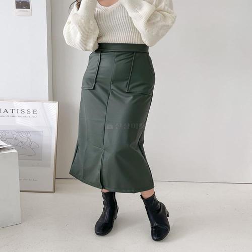 [옷자락]여성 가죽 스커트 H라인 절개 트임 안감 롱스커트