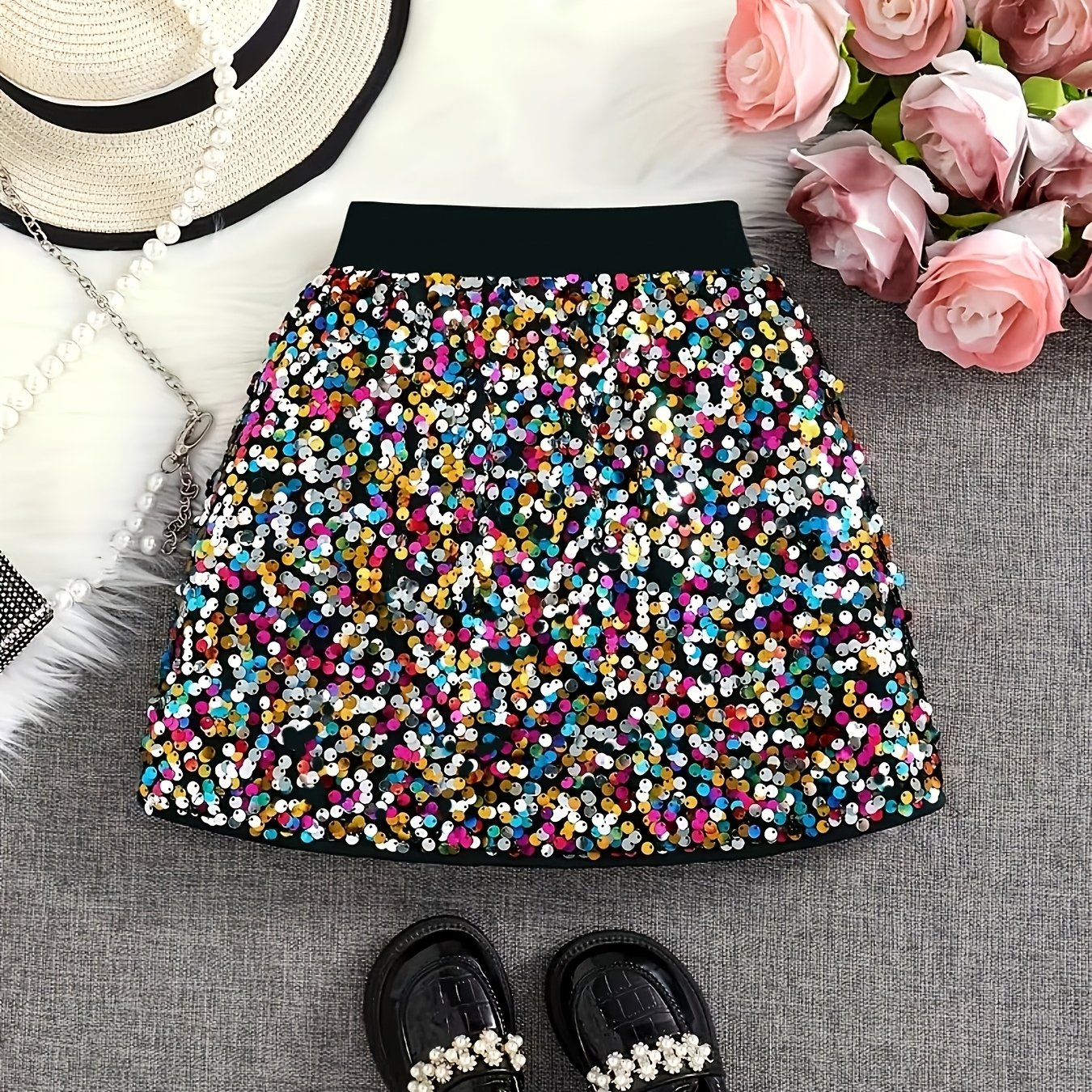 TEMU 여성용 신축성 허리 컬러풀 시퀸 미니 스커트, 반짝이는 파티 드레스, 크리스마스, 데일리웨어, 댄스 공연, 캐주얼 행사용 다용도 드레스