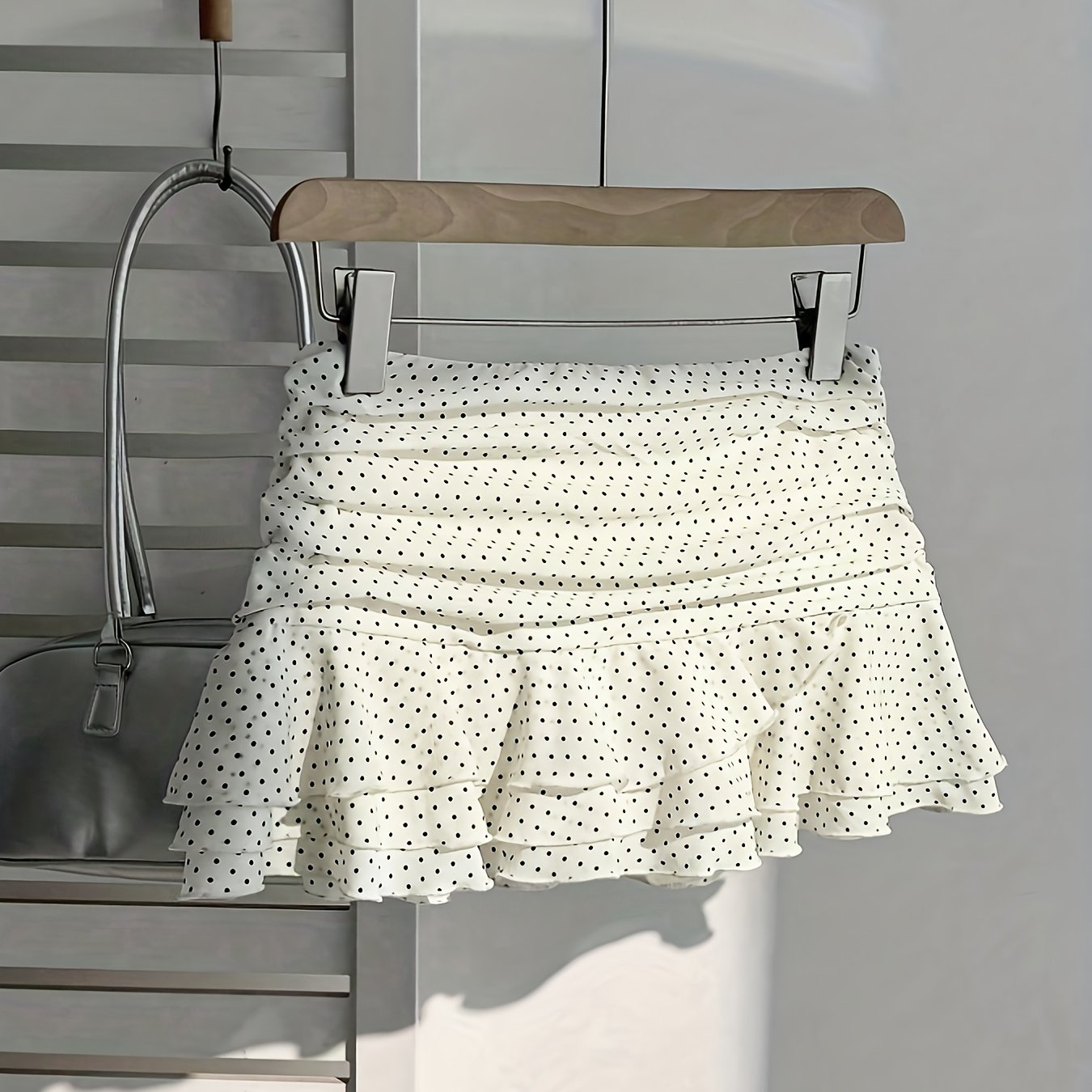 TEMU 세련된 러플 엣지와 물방울 무늬 프린트의 미니 스커트, 축제 행사에 완벽