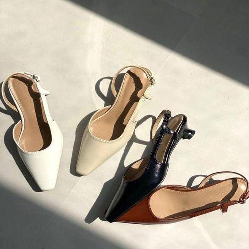 [셀러허브_여성트랜드패션]심플 스트랩 키튼힐 뾰족코 슬링백 로우굽