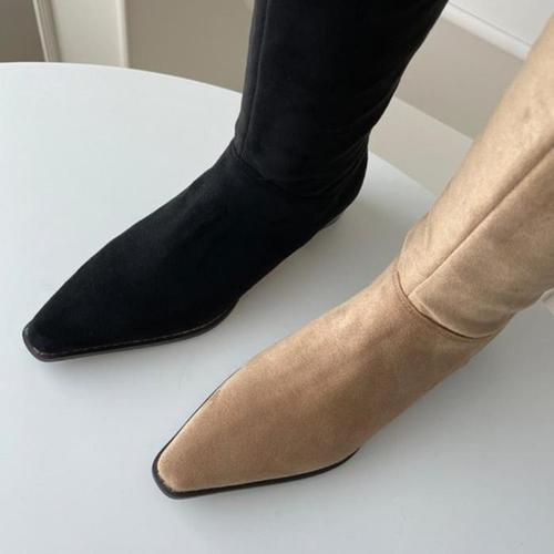 여자 뾰족코 로우힐 스웨이드 롱부츠_4
