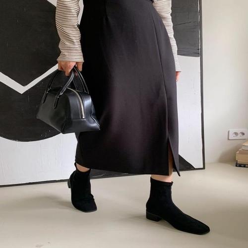 스웨이드 여성 지퍼 앵클부츠 로우힐 테코8823