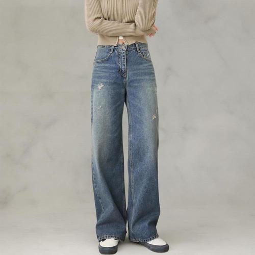 [다잇템][다잇템] 여자 H라인 새깅 박시 로우라이즈 논스판 워싱 청바지_22943268_588872