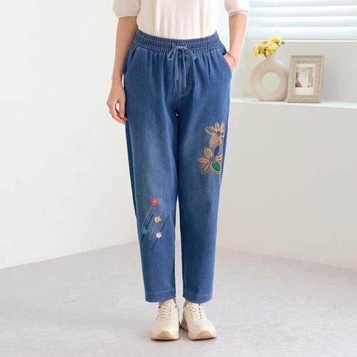[엄마옷 로즈맘] 아수꽃자수밴딩청바지