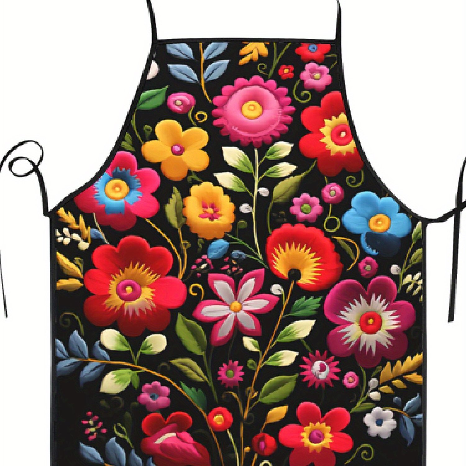 TEMU 비후두 멕시칸 플라워 무봉제 캐릭터 프린트 폴리에스터 민소매 주방용 내구성 있는 앞치마
