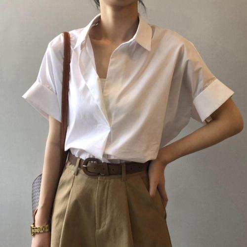 [셀럽하우스]화이트 NCTB9656 블라우스 여름 남방 롤업셔츠 반팔 여성셔츠