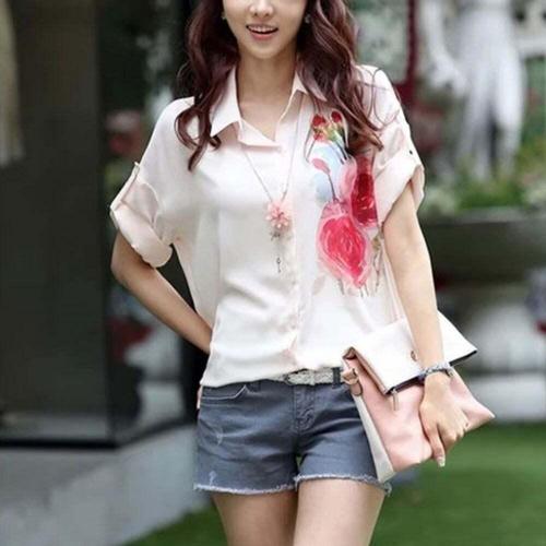 [셀럽하우스]빅사이즈 RIMD7323 가오리 롤업 블라우스 썸머 소매 데일리 여