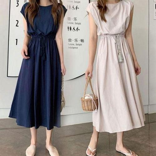 민소매 주름 데일리 반팔롱원피스 여름 여름원피 WFLMTZ2