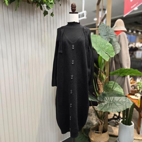 미즈큐즈 / 체인 패턴 니트 가디건 세트 민소매 롱 원피스