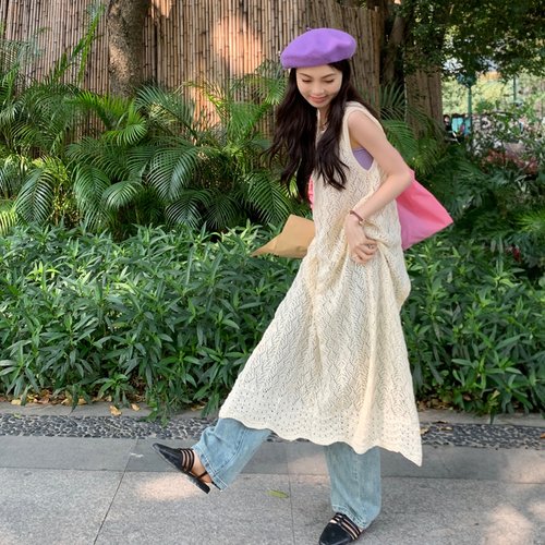 [에이치플러스몰]G125780_펀칭레이스 니트 나시 롱원피스