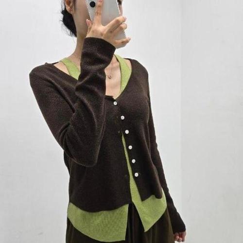 [다잇템]여자 베이직 버튼 슬리브리스 롱슬리브 니트