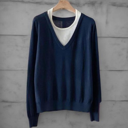 COSYEVNO 여성용 스웨터 가을 브이넥 빅사이즈 심플 캐주얼 스타일리쉬한 긴팔 셔츠 CXJzzs-32