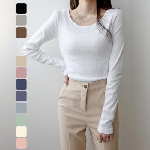 [다잇템]여자 롱슬리브 민무늬 코튼티 딱붙는 티셔츠 (19235839A)