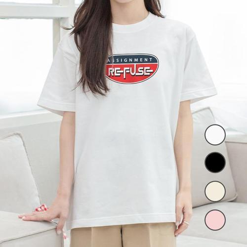 [유야]88까지 면 프린팅 반팔 롱 티셔츠 박스티 커플티 -TS0739H- 빅사이즈 루즈핏 여성 여름