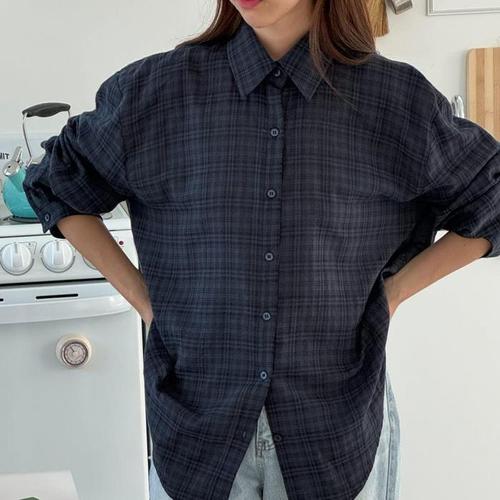 [다잇템]여자 벌룬 박스핏 캠퍼스룩 박시 롱슬리브 셔츠 (15978983A)