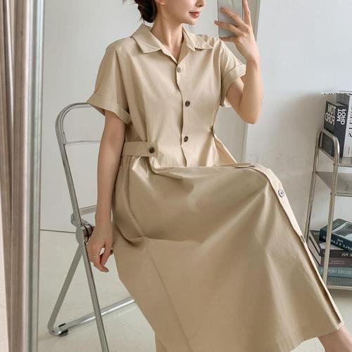 클래식 여성 셔츠원피스 허리벨트 하객룩 롱 원피스