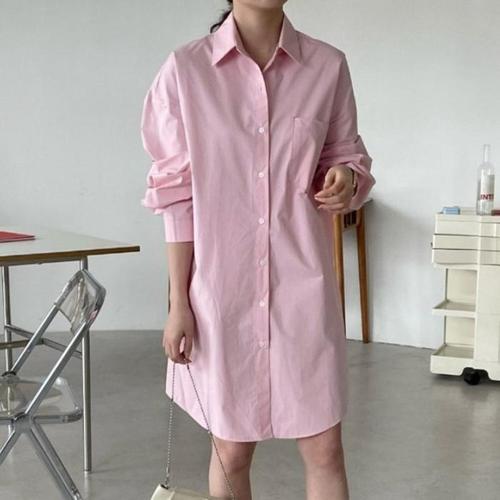 [다잇템]여자 소라 분홍 박시핏 SS 롱셔츠 원피스 (12810558A)