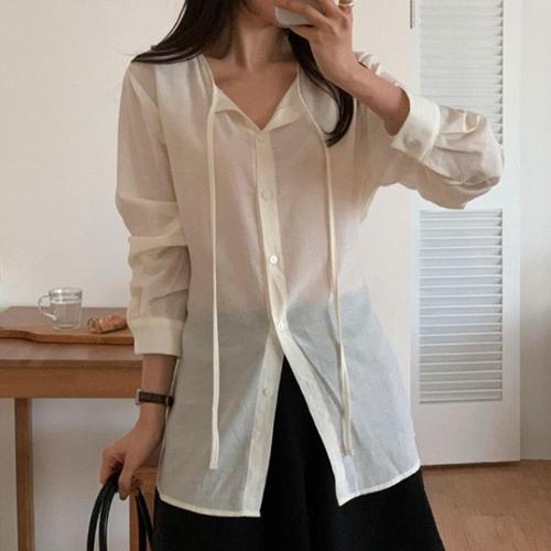[다잇템]여자 목끈 넥스트링 면혼방 롱 블라우스