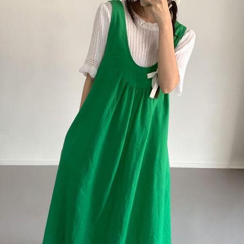 [다잇템]여자 리본 피서룩 슬리브리스 롱원피스