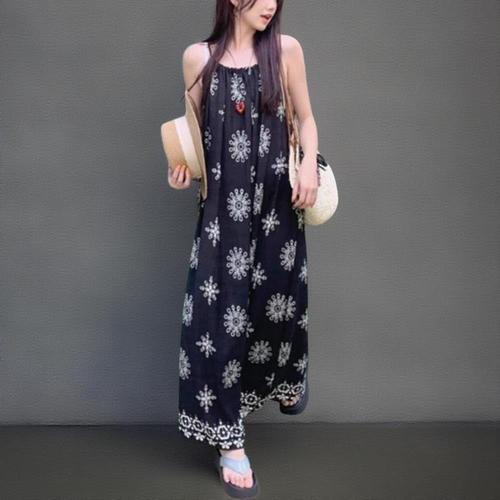 [옷자락] 여성 여름 휴양지 캐주얼 롱 민소매 원피스