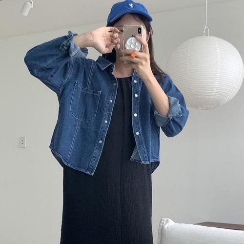 [다잇템]여자 진 잇템 FW 진셔츠 롱슬리브 주머니 셔츠 (18014075A)