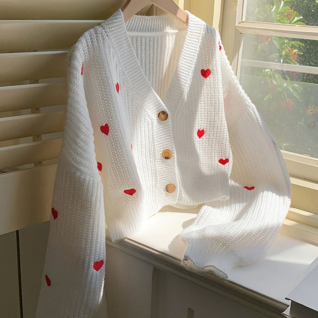 TEMU DJ0509247 여성 캐주얼 하트 패턴 오버사이즈 드롭 숄더 긴팔 가디건, 가을/겨울용 롱슬리브 탑